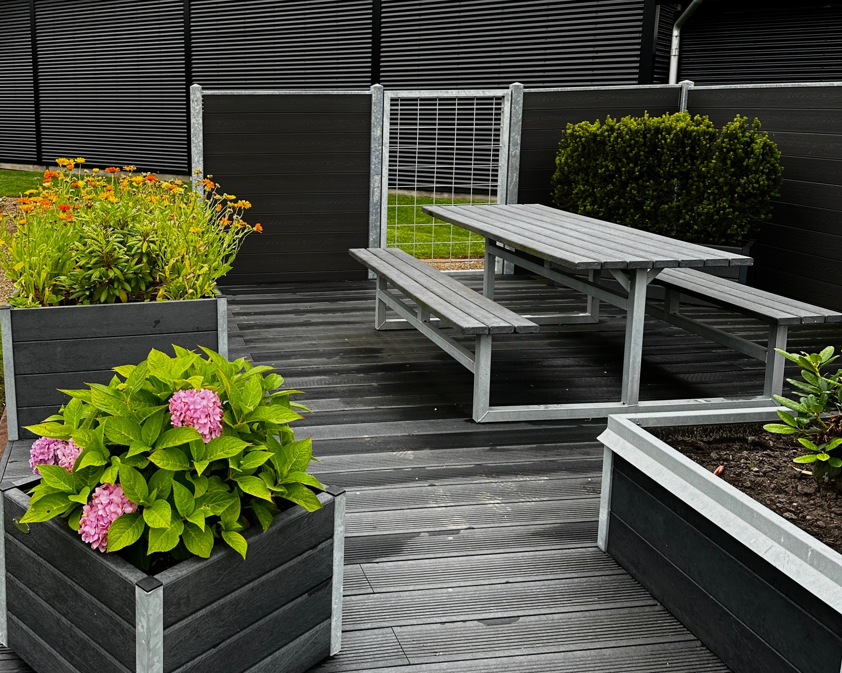 Materialet er ekstremt robust og modstandsdygtigt over for vejr, fugt og skadedyr. Det betyder ingen råd, rust eller revner – kun en flot overflade, der holder form og farve i mange år.