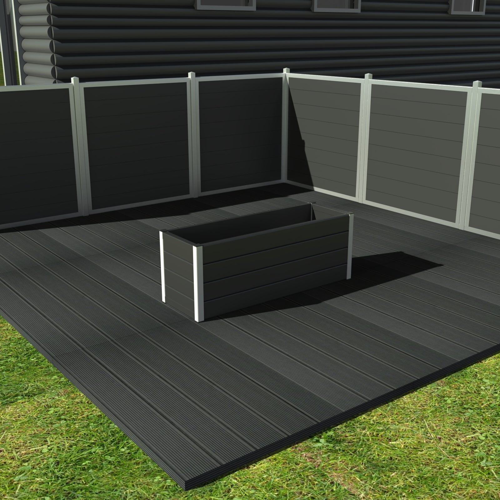 Blomsterkummen består af galvaniserede stålstolper som hjørner og plastplanker.