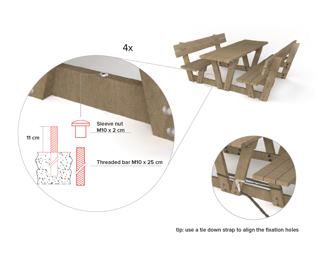 Lyon picnicbordet er produceret af genanvendt plast (PE og PP) og tilbyder en grøn og miljøansvarlig løsning uden at gå på kompromis med funktionalitet eller æstetik. Ved at vælge Lyon picnicbordet er du med til at støtte en bæredygtig fremtid og fremme brugen af genbrugsmaterialer i byrummet.