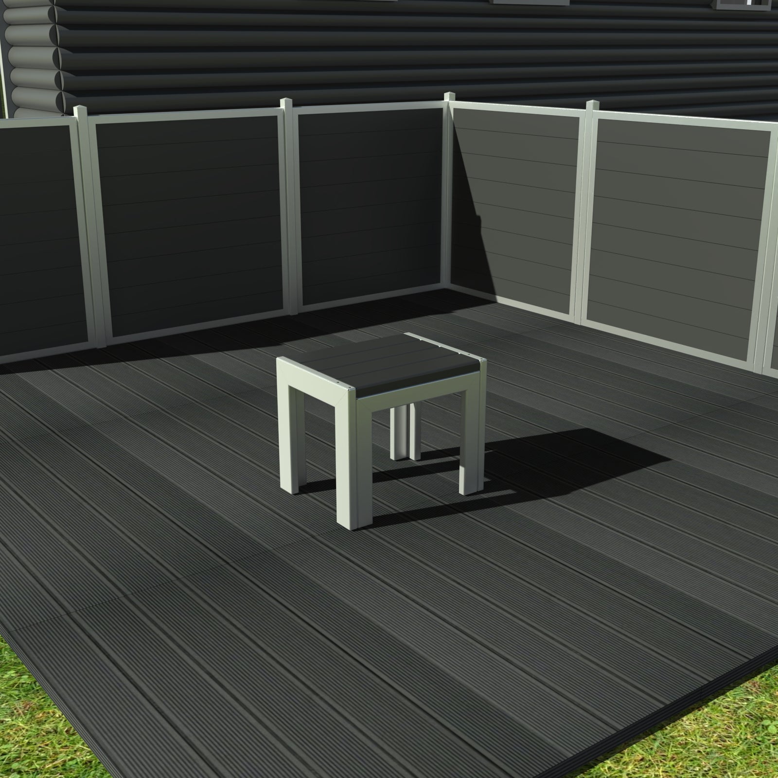 Plastplankerne er massive og består af 100% genbrugsplast. Stellet er fuldsvejst.