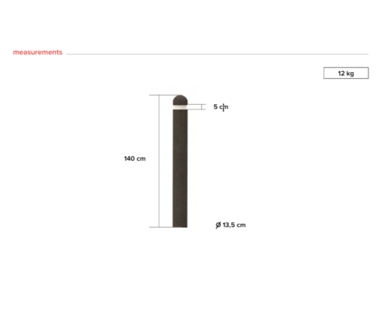 Denne runde parkeringspullert fra Govaplast er en alsidig og effektiv løsning til trafiksikring og afgrænsning i det offentlige rum. Fremstillet i genbrugsplast kombinerer den funktionalitet med bæredygtighed og høj holdbarhed. Pullerten er ideel til både beskyttelse og styring af trafik, og den er velegnet til områder som parkeringspladser, vejkryds, indkørsler og industrigrunde.