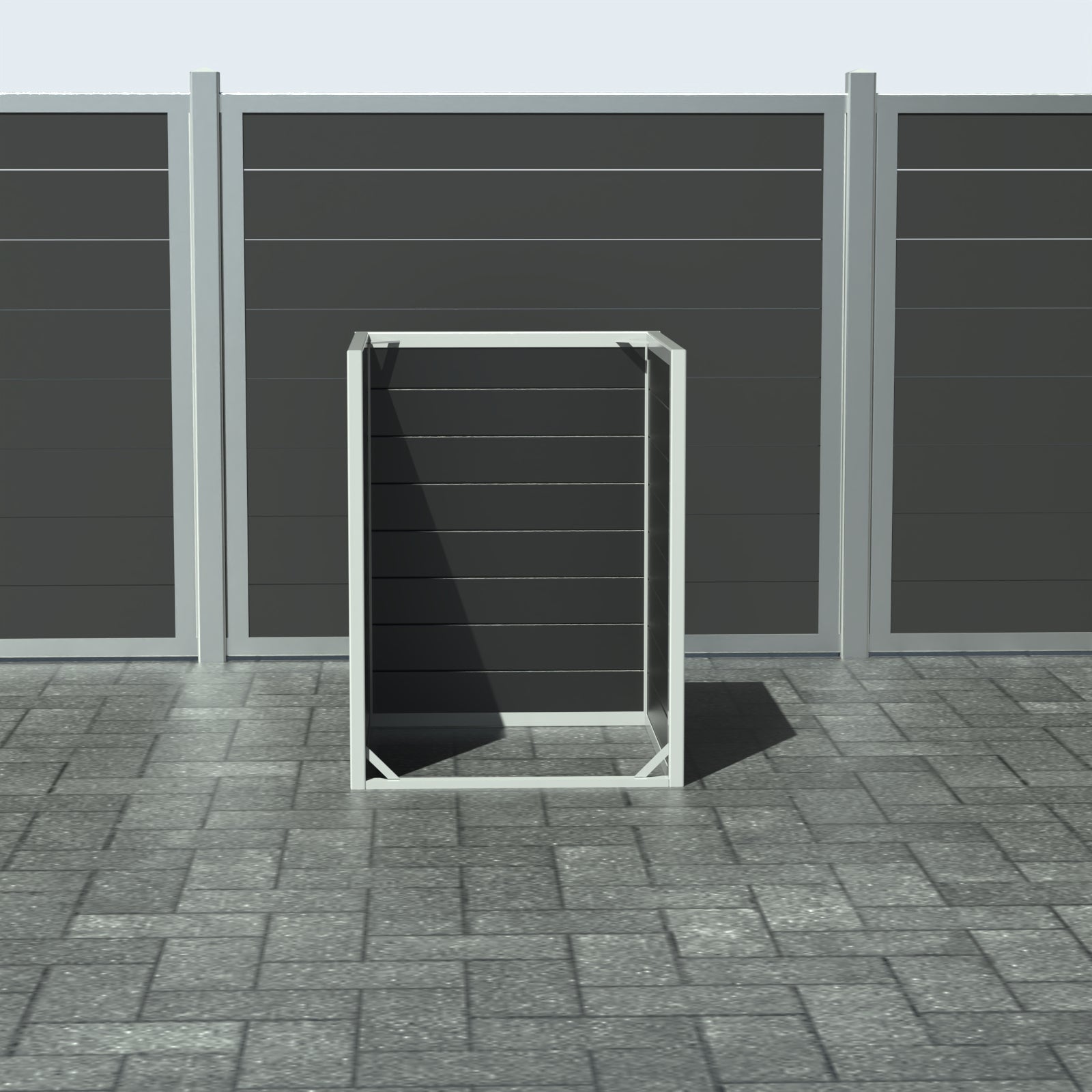 Vi producerer vores skraldespandsskjulere i varmgalvaniseret stål og beklæder dem med vedligeholdelsesfrie genbrugsplastplanker.