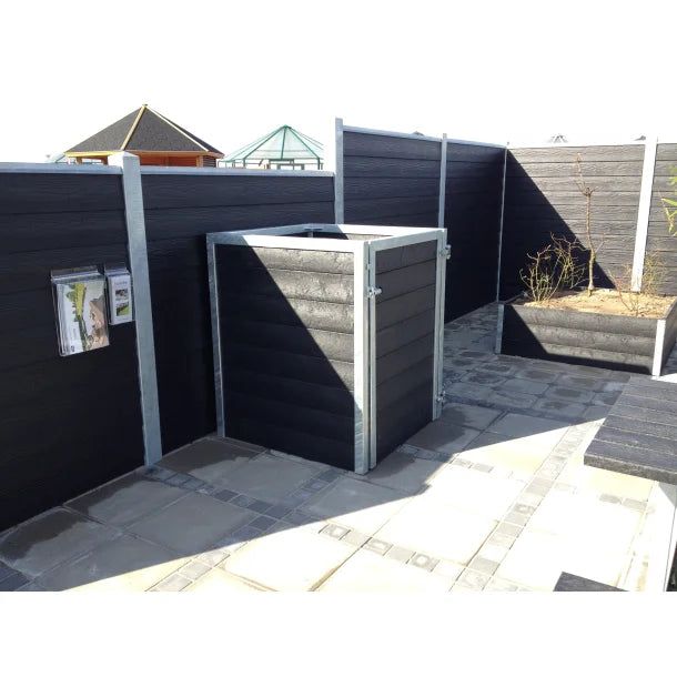 Med InGarden's affaldsskjuler bliver skraldespanden gemt af vejen bag denne flotte afskærmning.