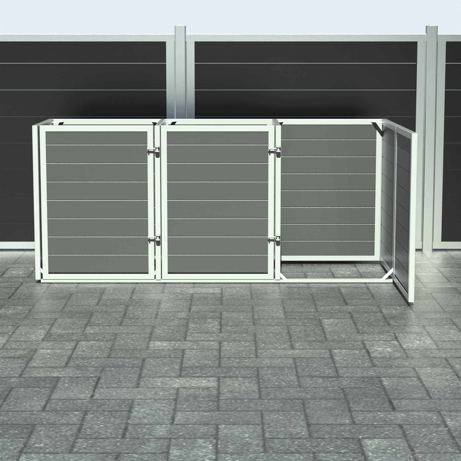 Skraldespandsskjuler - Triple med låge - Grå