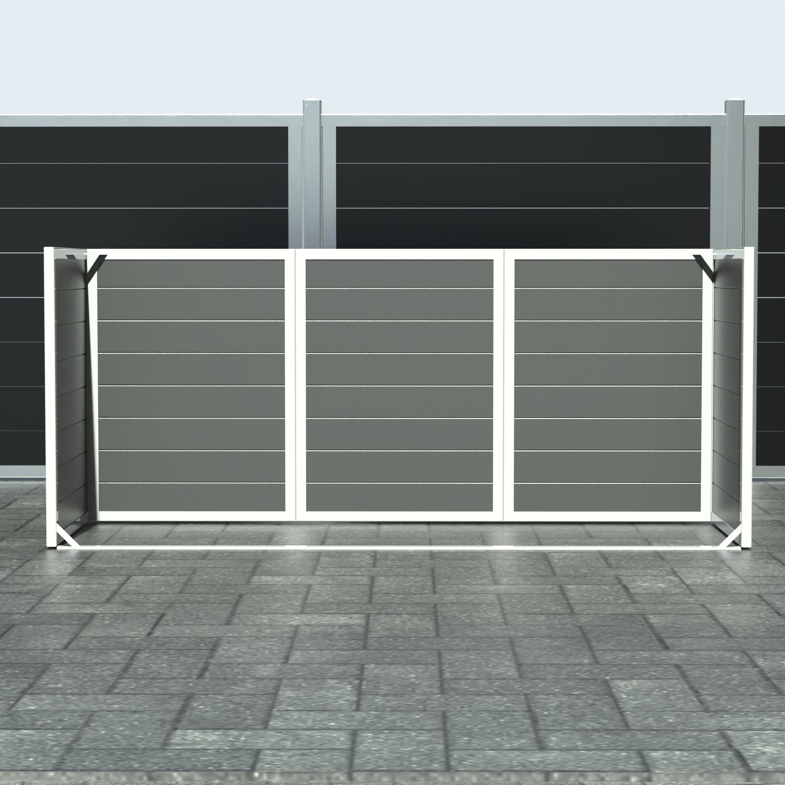 Skraldespandsskjuler - Triple uden låge - Aske grå