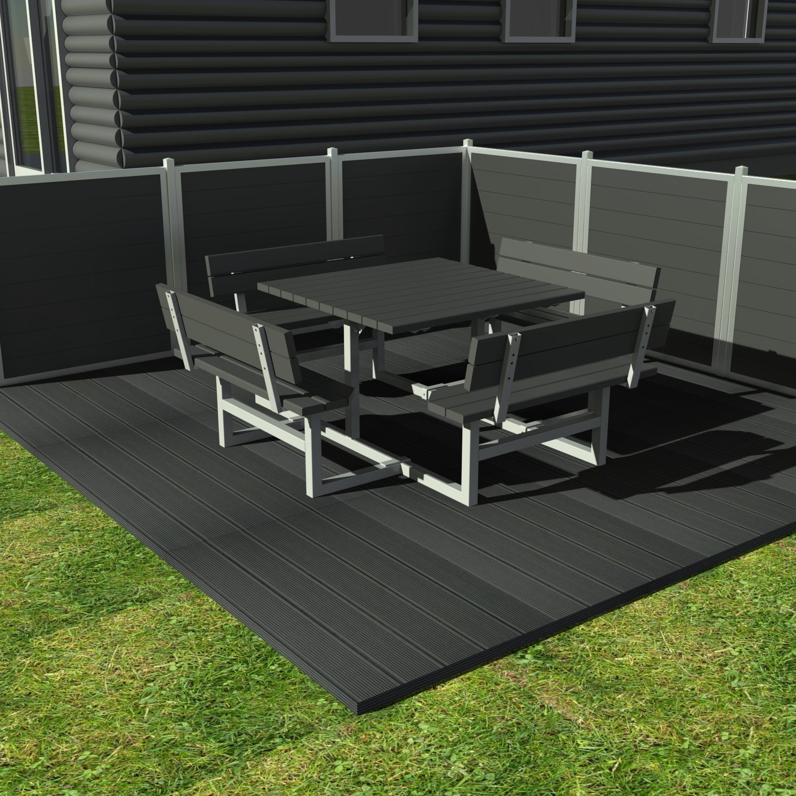 Bordbænksættet monteres med plastplanker i 100% vedligeholdelsesfri genbrugsplast. Dette er et alternativt til komposit.