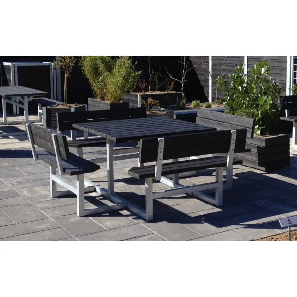 Kvadratisk bord bænkesæt med ryglæn - Vedligeholdelsesfrie genbrugsplastplanker