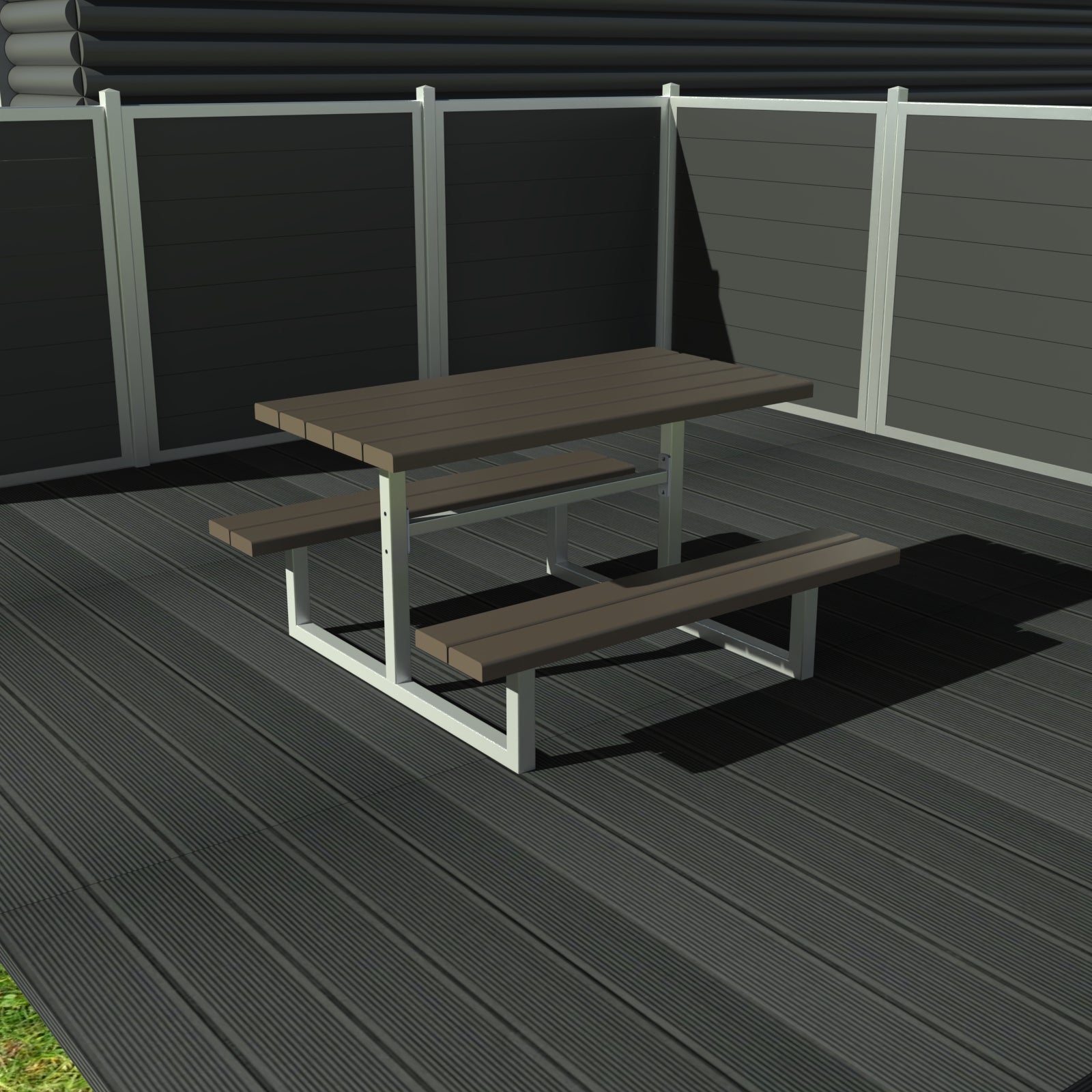 Bordbænksættet monteres med plastplanker i 100% vedligeholdelsesfri genbrugsplast. Dette er et alternativt til komposit.