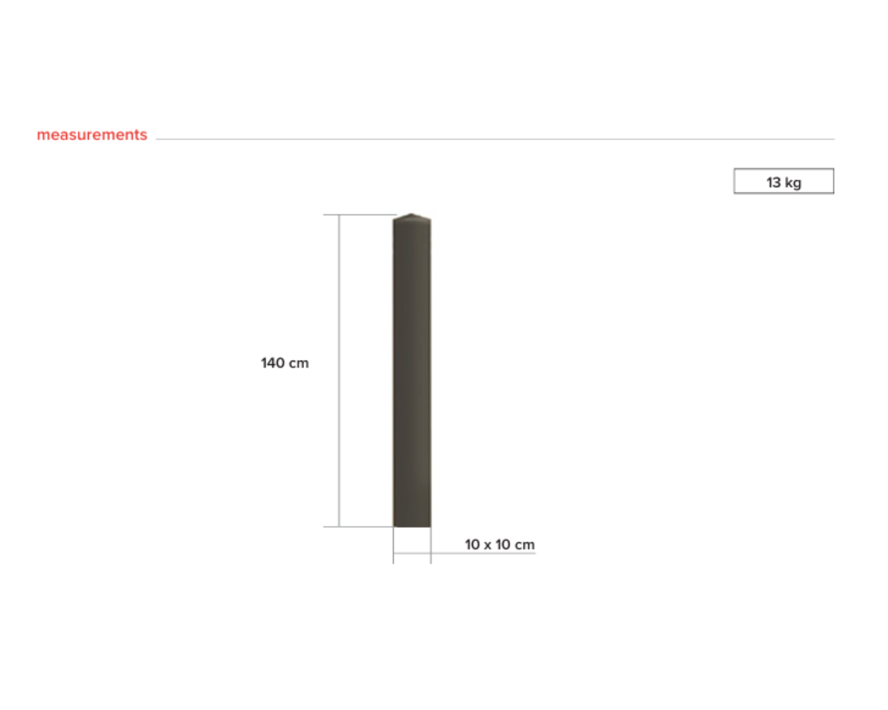 140 cm höjd ⎮ 10 cm bredd ⎮ 10 cm längd |