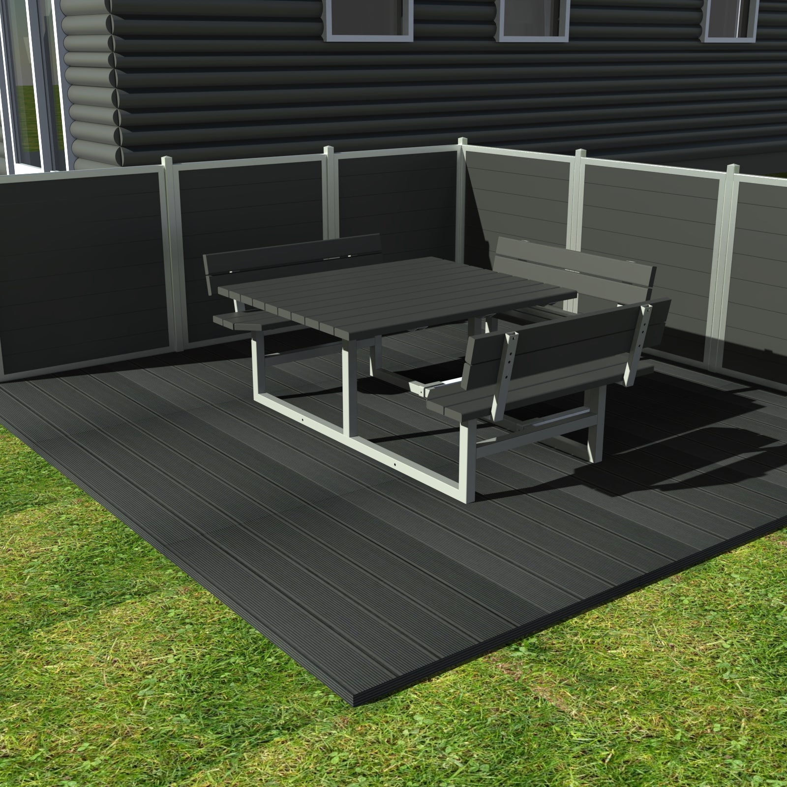 Bordsbänksgruppen är monterad med plastplankor tillverkade av 100 % underhållsfri återvunnen plast. Detta är ett alternativ till komposit .